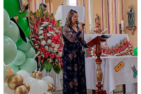 Los docentes encargados de el grado Preescolar lideran la ceremonia para resaltar el paso de los estudiantes de preescolar a primaria.